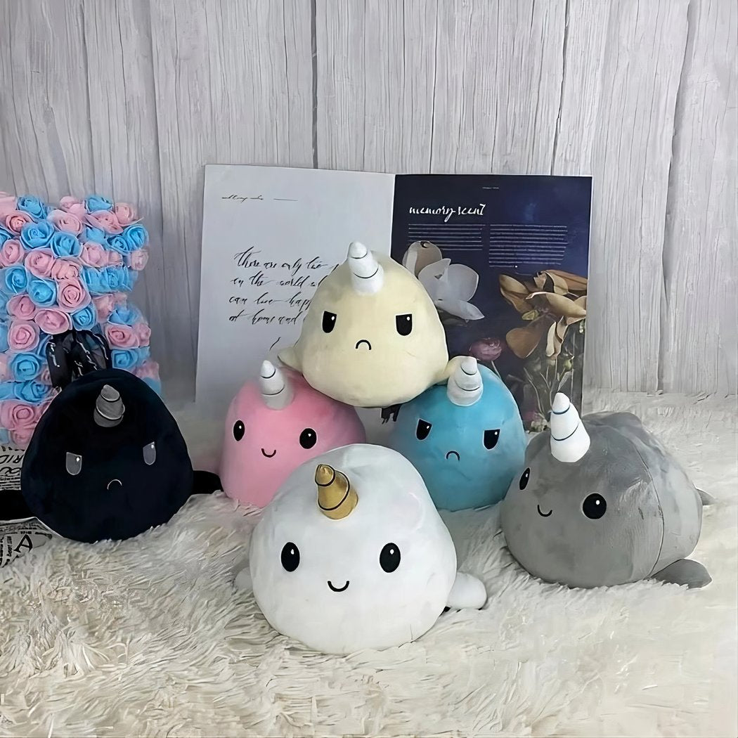 Découvrez la Peluche baleine licorne blanche, une compagne douce et féérique pour les tout-petits.