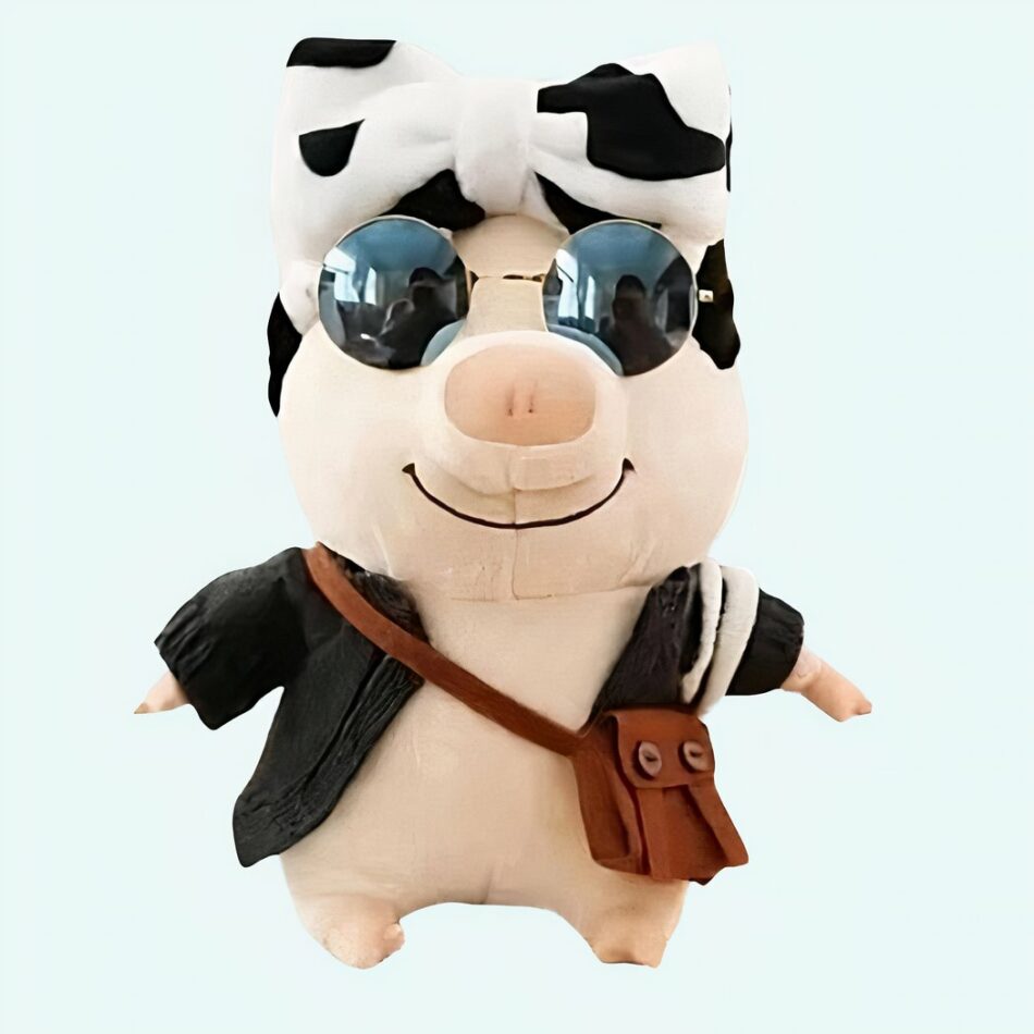 Découvrez la Peluche cochon habillé avec noeud vache, compagnon tendre et sûr pour bébé, idéal pour les câlins matin et soir, pour moments magiques.