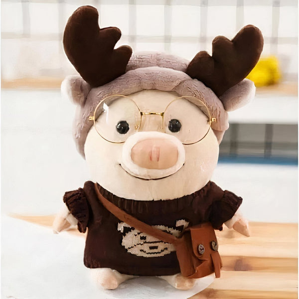 Pour égayer la chambre de votre enfant, découvrez la Peluche cochon habillé en renne et son charme.