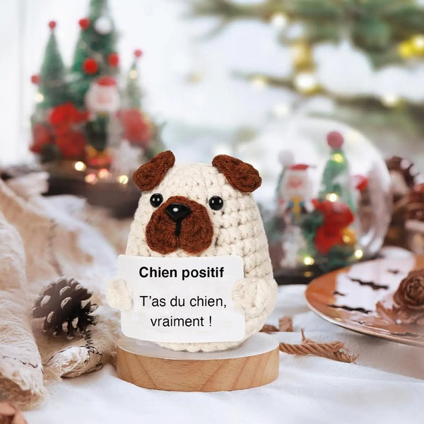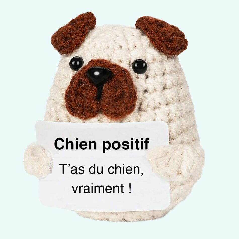 Découvrez la Peluche crochet positive chien, un compagnon tendre pour les petites mains.