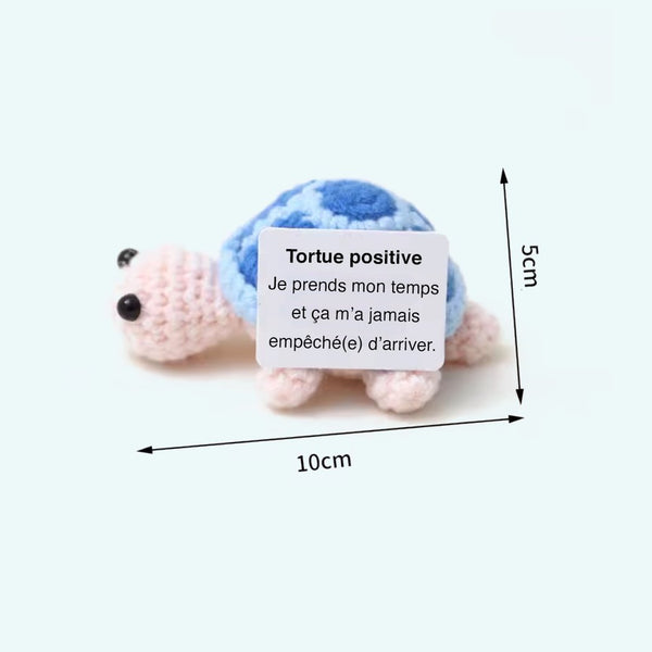 Pour des câlins apaisants, la Peluche crochet positive tortue offre douceur et sécurité.