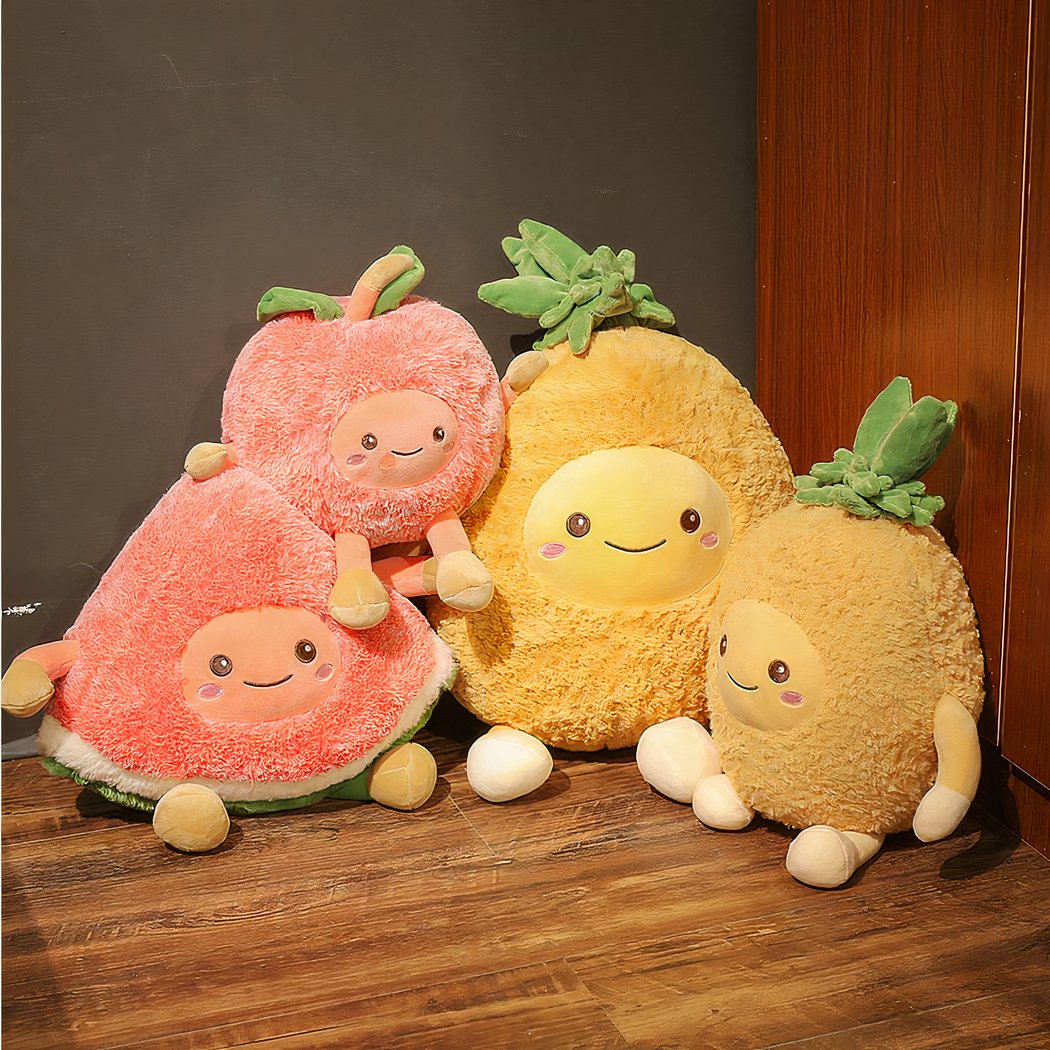 Découvrez la Peluche douce en forme de fruit pastèque, compagnon tendre pour les tout-petits.