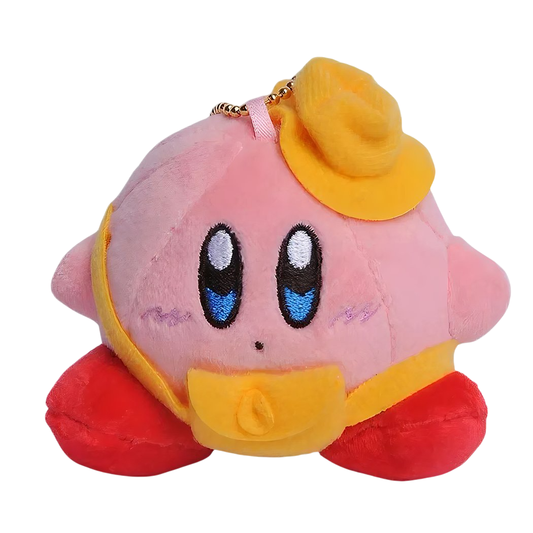 Découvrez la Peluche Kirby avec casquette jaune, compagne tendre et joyeuse pour les tout-petits.