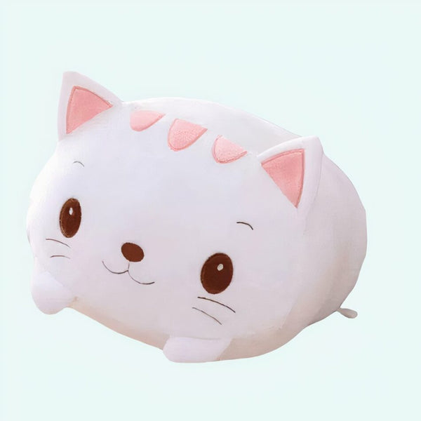 Idéal pour les câlins nocturnes, la Peluche oreiller chat blanc offre douceur et soutien.