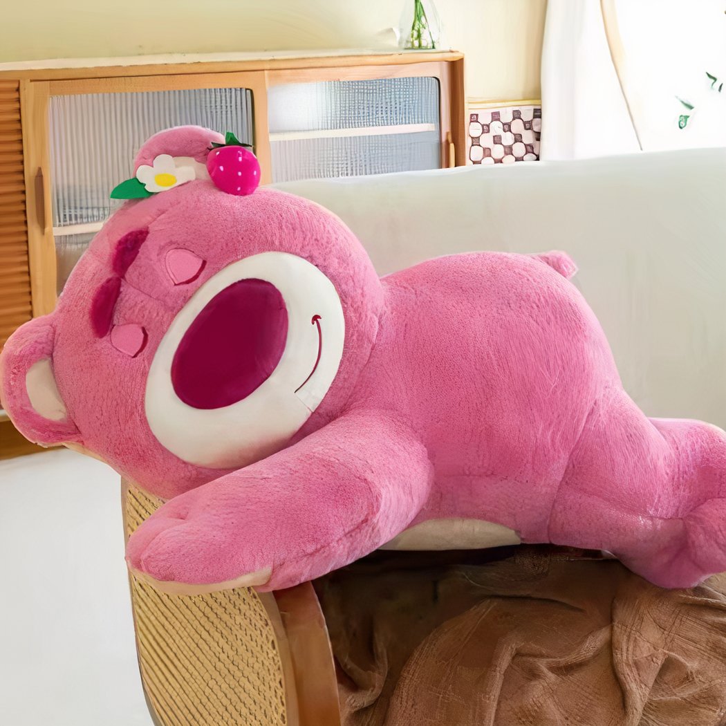 Découvrez la Peluche oreiller ours rose, un compagnon câlin idéal pour le sommeil des tout-petits.