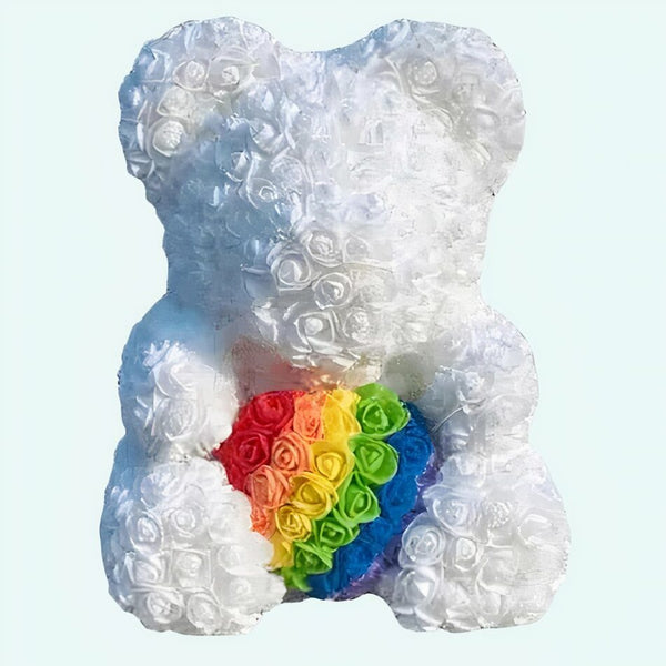Découvrez la Peluche ours roses arc-en-ciel, une compagne idéale pour les câlins nocturnes.