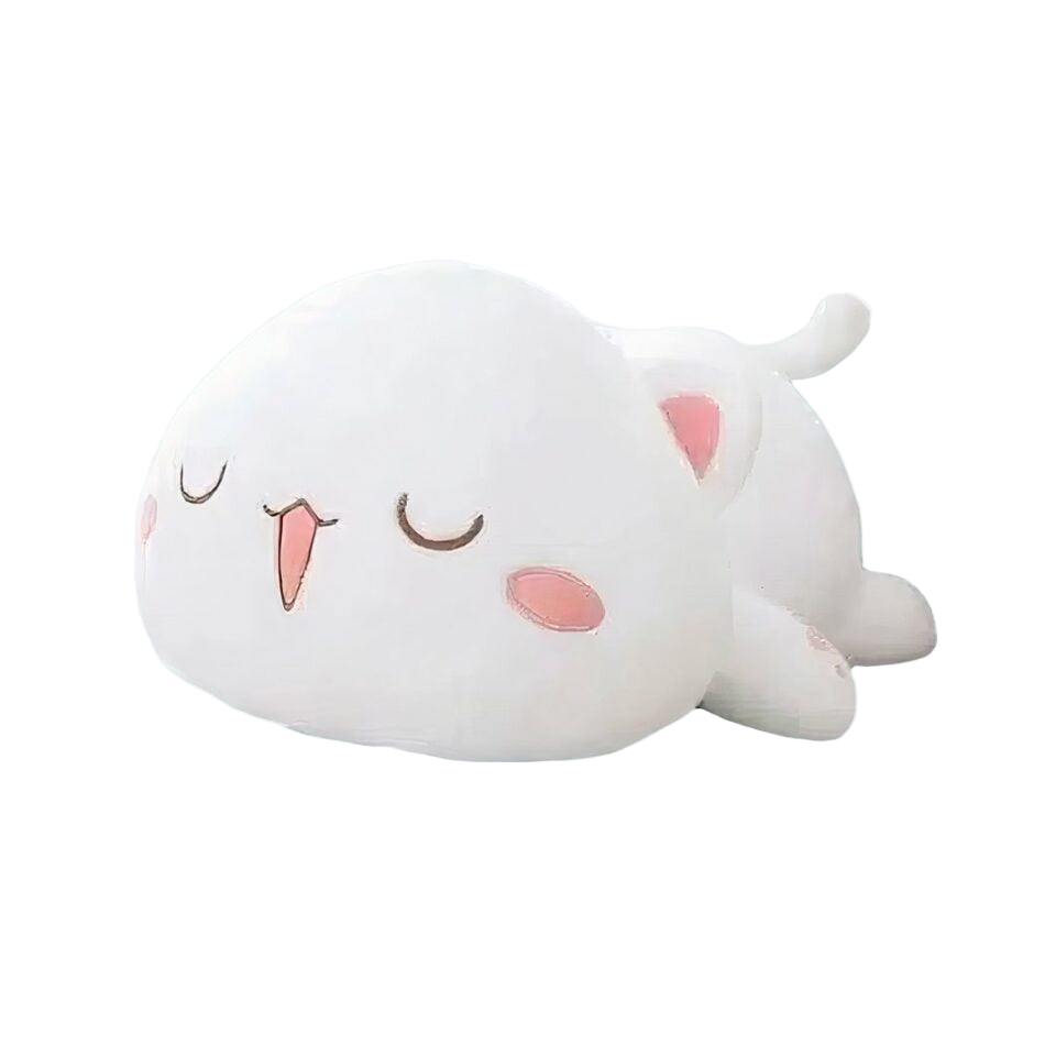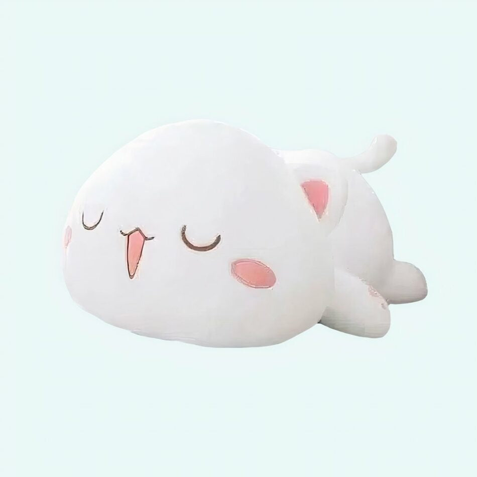 Pour des nuits douces, la Peluche chat blanc kawaii endormi accompagne bébé avec tendresse.