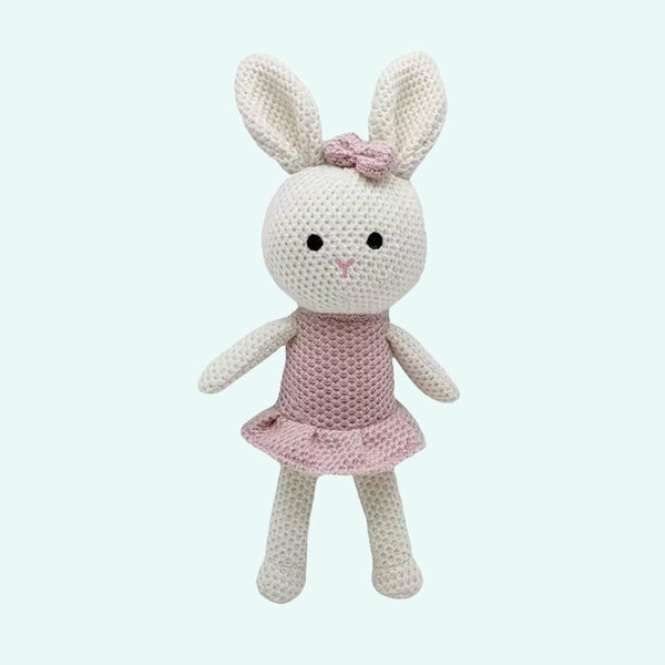 Le design mademoiselle lapin invite au jeu imaginatif, favorisant l'attachement et le confort.